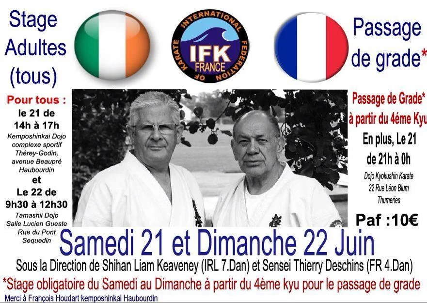 Seminar hosted by IFK France with Shihan Liam Keaveney (IRL) and Sensei Thierry Deschins (FR).