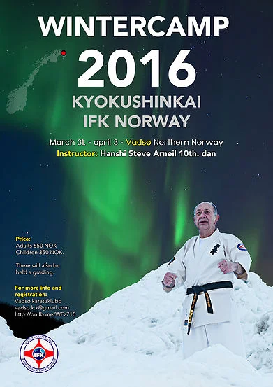 For the 15th time in row Vadsø karateklubb invites members of the Kyokushin family to a wintercamp in Vadsø with Hanshi Steve Arneil from March 31 to April 3, 2016 (there will be sessions from thursday to sunday) On sunday April 3, Hanshi will hold a grading for IFK-members